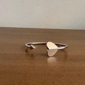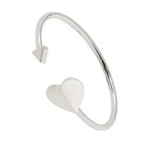 Elegant Silver bangle bracelet featuring a heart design. Perfect for adding a touch of sophistication to any outfit.