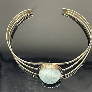 Sterling Silver 925 Oval Larimar Cuff Bracelet 13.8g 8 Inches