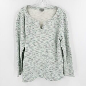 Talbots Cream Green Space Dye Metallic Side Button Pullover Sweatshirt Size XL