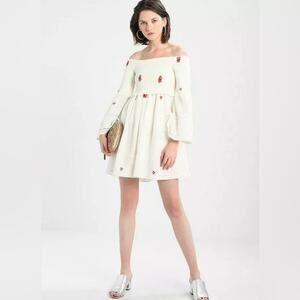 Free People Counting Daisies Boho Embroidered Smocked Dress Cottagecore Size Med