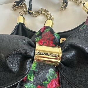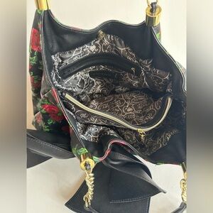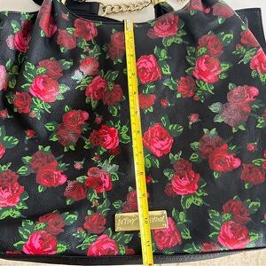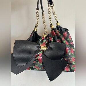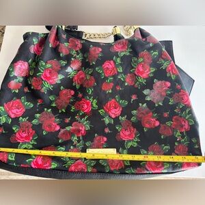 Betsey Johnson Oversized Bow Chain Drop Handle Red Roses Slouchy Hobo Bag