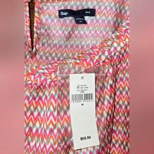 This listing is for a Gap NWT sleeveless, braided straps, pink and orange, chevron patterned, lightweight mini dress with cinched waist. Size M. Perfect for summer. This dress is in new condition.