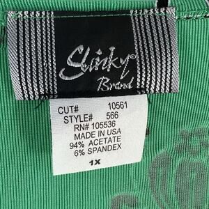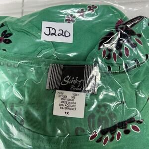 Slinky Brand Plus 1X Tunic Top Asymmetric Geometric Print V-Neck Lagenlook Green