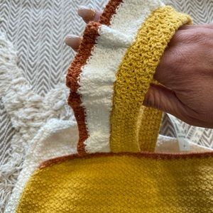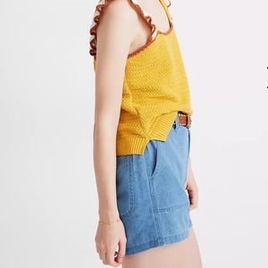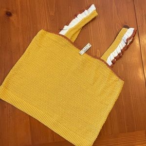 Flirty and feminine, this crocheted cotton sweater tank has retro-striped ruffles on the (bra-friendly) straps and a square neckline. Wear it front-tucked into high-rise jeans and feel that gorgeous sun on your shoulders. Nice, huh?