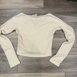 Cropped Long Sleeve Waffle Top Solid Crew Neck Top