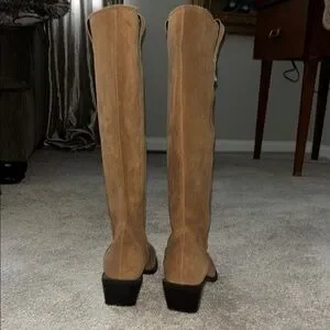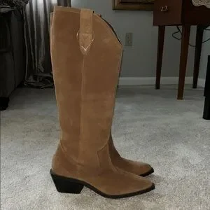 These brown heeled suede boots feature a timeless design with a structured shaft and a comfortable heel. Crafted for style and ease, they are perfect for adding a touch of elegance to any outfit. New! Never worn. Make offer!! If they are good enough for Bethany they are good enough for you!! 😍