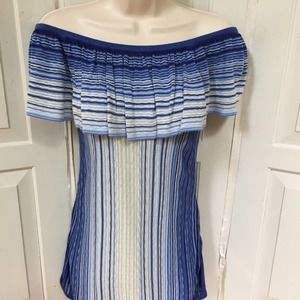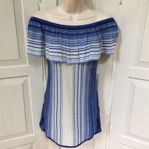 This elegant blouse from White House Black Market features a sophisticated blend of blue and silver hues, perfect for adding a touch of class to any outfit. The top's design is versatile, making it suitable for both professional settings and evening gatherings. Its luxurious fabric ensures comfort and style throughout the day.