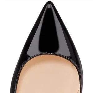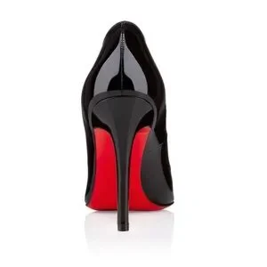 A Louboutin classic, the Pigalle pump embodies the essence of its Parisian namesake and the glamour of the district's Moulin Rouge showgirls. The shoe's revealing décolleté gently encases the foot, plunging down to a low-cut vamp, which then tapers off into a subtly pointed toe. Crafted from glossy black patent calf leather, the upper sits atop a vertiginous 100-mm slender stiletto heel, audaciously lined in signature red.