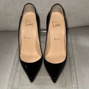 Gorgeous gently worn classic Loubs. Last two images of heels scuffs and the soles are the only reflection or sign of wear. Both imperfections can be easily mended by a shoe repair to made look like new!