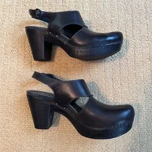 Dansko Riley Clogs Slingback Heels Euro Size 39 = US 8.5 - 9 Black Leather