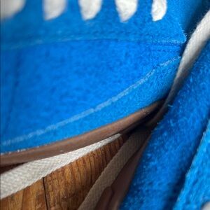 These Nike sneakers boast a vibrant blue and white color scheme, featuring a classic low-top silhouette. The shoes are crafted with a durable suede or canvas upper, complemented by white laces and a signature swoosh logo. Perfect for casual wear, they offer a clean and sporty look that embodies Nike's heritage style.