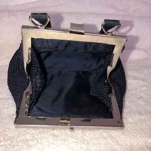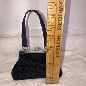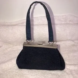 PREOWNED THE SAK mini elegant black knit handbag with snap closure is perfect for any occasion. Its sleek design and versatile color make it a must-have accessory.