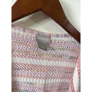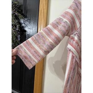 NWT Chicos Sz 1 M Pink Southwestern Stripe Cardigan Drape Front Tweed 3/4 Sleeve