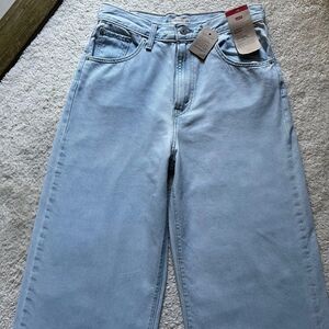 Selling brand new Levi's cinch baggy high rise jeans in size 28/31. Adjustable waist. 100% cotton, lightweight denim. 13" rise, 29" waist, 31" inseam. Zip-fly.