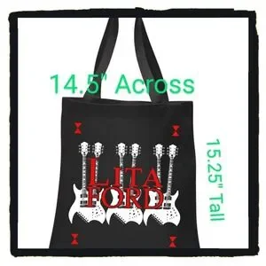 🎸 Lita Ford 🎸 Double Neck Guitar Logo Canvas Tote Bag ~ Never Used
