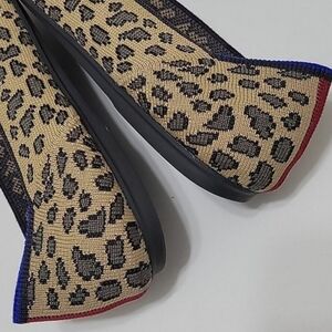 This article worn several times. no box. heels are in great condition. slipon style. flexible. sustainable. comfy. cheetah leopard print.