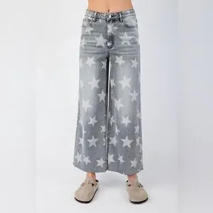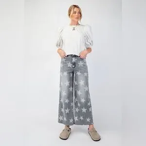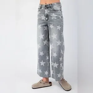 Stylish wide-leg jeans with star pattern. Comfortable fit. Perfect for casual wear.