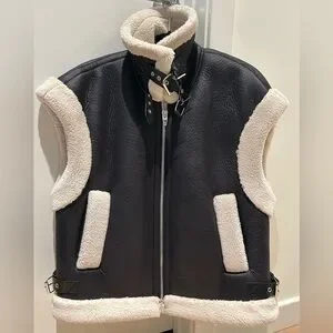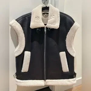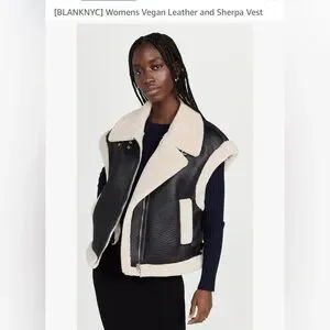 Discover the perfect blend of style and comfort with the Blank NYC Black and Cream Sherpa Vest. This chic piece features a striking two-tone design, combining black leather with plush cream shearling for a modern, edgy look. Ideal for layering, it adds a touch of sophistication to any outfit.