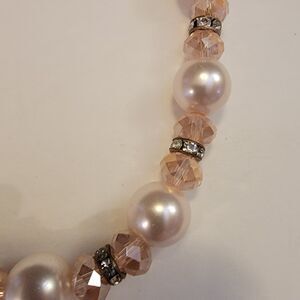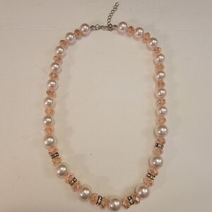 Gorgeous Faux Pearl (Pale Pink / Blush) With Light Pink Fauceted Glass Bead Necklace with Rhinestone Rondelles .