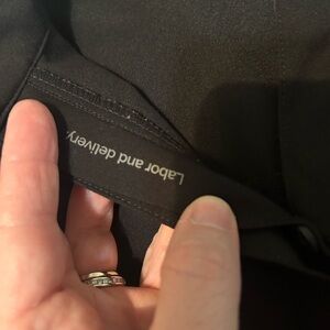 Rafaela Oversized Top is a Large with “Labor and Delivery” on collar. Zamora Jogger Pants are a Large Tall. Side Pocket zipper has come away from fabric as shown. Would not be able to zip pocket all the way without repair. Smoke free