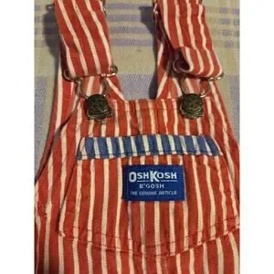 Vtg Osh Kosh Sweats 2T Red White Striped Vestbak Rough Tough 90s 80s Overalls
