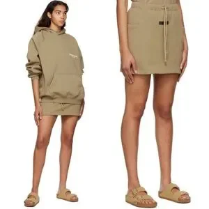 Fear Of God Essentials Fleece Mini Skirt Drawstrings Cargo Tan Brown