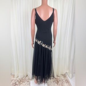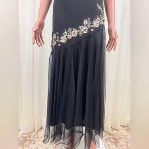R&M Richards Elegant Black Floral Embroidered & Beaded Dress Size 8P