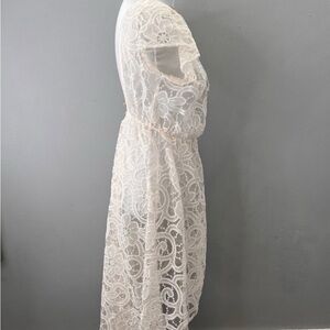 Victoria's Secret Dream Angels lace kimono robe, duster, open front coverup. Great for layering over jeans, shorts, swimsuit, etc. Meant to be worn open but has ties at the waist if you choose to tie it. Size XS/S.