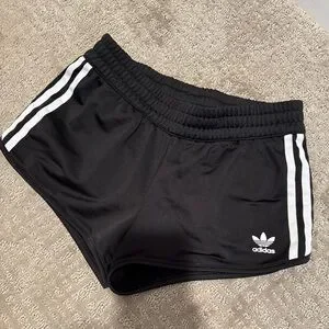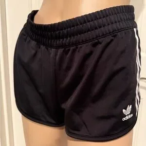 These Adidas shorts offer a sleek black design with contrasting white stripes, embodying a classic sporty look. Made from a durable polyester blend, they are perfect for workouts and sports activities. The elastic waistband ensures a comfortable and secure fit.