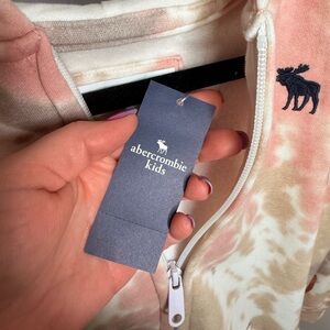 This Abercrombie Kids jacket showcases a unique tie-dye pattern in pink and brown, offering a casual yet stylish look. Crafted from a soft fabric, it ensures comfort and warmth for everyday wear. The relaxed fit and ribbed cuffs add to its laid-back appeal. This jacket is a little thicker for a sweatshirt jacket but still lightweight enough for spring or fall! **Brand New**