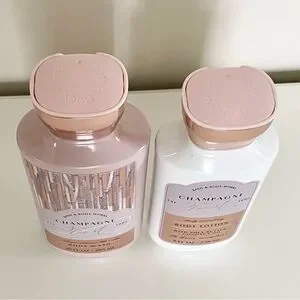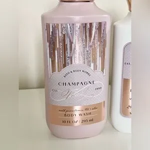 Bath & Body Works Champagne Toast Body Wash & Lotion Full Size Set with Plastic Tote Bag. (Cupcake style). May have minor marks on tote bag. New in bottles. Indulge in the luxurious Bath & Body Works Champagne Toast Body Lotion Set. A refreshing and nourishing experience for your skin. See all photos.