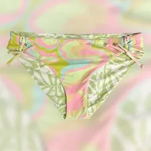 Stand out poolside or seaside with these Roxy reversible bikini bottoms, featuring a vibrant tropical print on one side and a dreamy pastel swirl on the other. The low-rise hipster fit with adjustable side ties offers a flattering silhouette, while the dual prints make it perfect for mixing and matching. A must-have piece for your retro surf, beach babe, or Y2K-inspired wardrobe.