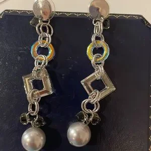Add a touch of elegance with these stunning silver and iridescent dangle earrings. Making a Statement for any occasion!