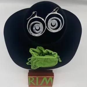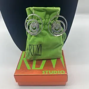 Robert Lee Morris RLM Studio Earrings 925 Sterling Silver Circular Swirl Design Moon Dangle Drop Slightly Hammered Texture Hook Post with Plastic Backing to Keep Earrings in Place. Markings on the Back 925 China RLM Studio Measures 1.75"