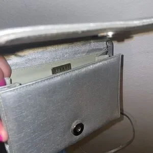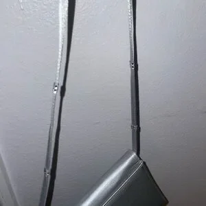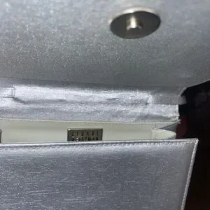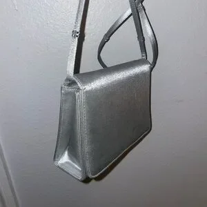 This Stuart Weitzman mini bag in a stunning silver hue is a perfect blend of style and functionality. Its compact, structured design and smooth, shiny finish make it an ideal accessory for carrying essentials with a touch of modern elegance. The minimalist aesthetic and lustrous metallic finish ensure it stands out in any setting.