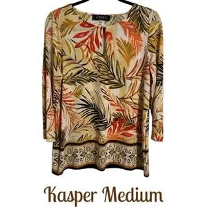 BEAUTIFUL KASPER TROPICAL LEAF PRINT TOP w/NECKLINE DETAIL MEDIUM #S