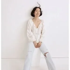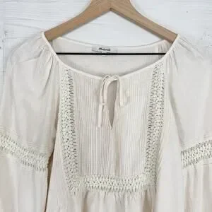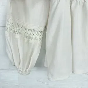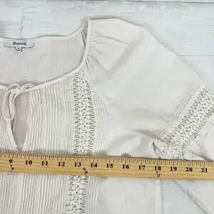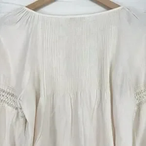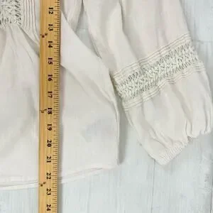 Madewell Peasant Top XS Ivory Linen-Blend Pintuck Boho Bubble Sleeves Babydoll