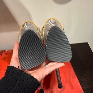 Pleaser Flamingo 1018G Gold Glitter Open Toe Lace Up back Size 7