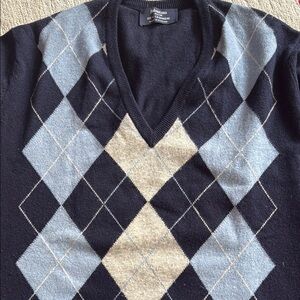 Blue Cashmere V-Neck Argyle Sweater Medium Weight
