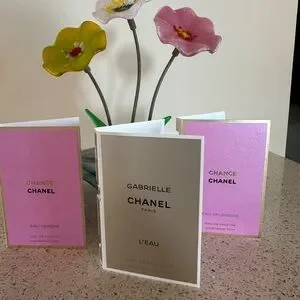 NWT Elegant Chanel fragrance trio. Features pink, gold, and purple sample bottles. Perfect for any occasion. Great for travels … throw in your bag and you’re on the go. 1.5mI 0.05 Fl oz.