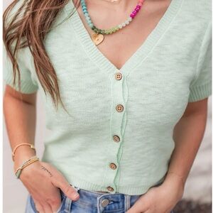 Elevate your style with this chic mint green button-up top. Perfect for any occasion, this top offers a fresh and vibrant look.