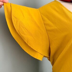 A New Day Mustard Gold Faux Wrap Texture Ruffle Short Sleeve Midi Dress Plus XXL