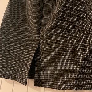Excellent condition! A black and white pencil skirt with black ribbon trim and side zipper.