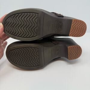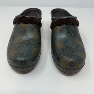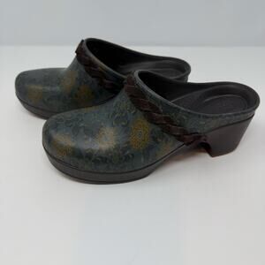 Crocs Clogs Women's Size 6 Green Brown Sarah Clog Mule Leather Braiding Floral