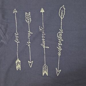 Torrid nark blue V-neck tee featuring arrow graphics and text. Used, good condition, not perfect