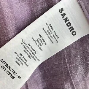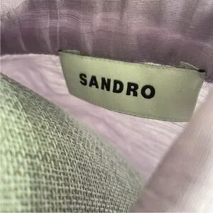 This vibrant purple dress by Sandro is perfect for a night out, featuring a playful skater style that flares elegantly from the waist down. It offers versatility, while the high-waisted design and structured fabric ensure a flattering silhouette.