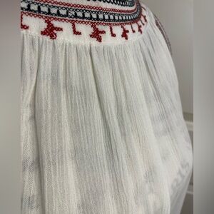 Como Vintage Embroidered White Sleeveless Cold Shoulder Top Size Large. Extremely roomy and flowy and cool. Has a bohemian vibe. Gauzy look. Excellent condition.