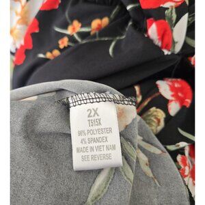 Ups & Downs Women's 2X Faux Wrap Dress Black Floral Print Runs Small
