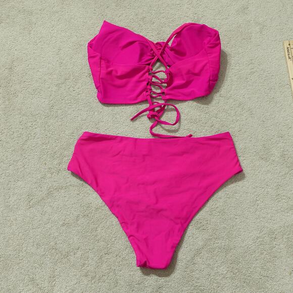Zaful Womens Two Piece Swimsuit High Waist Cross Back Bikini Set Pink Size XL