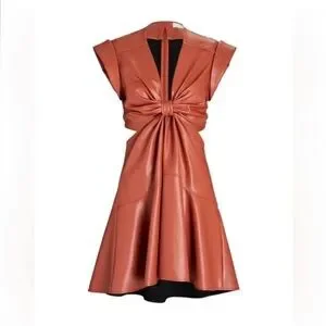 A.L.C Lexi orange or brown vegan leather v neck cutout mini dress